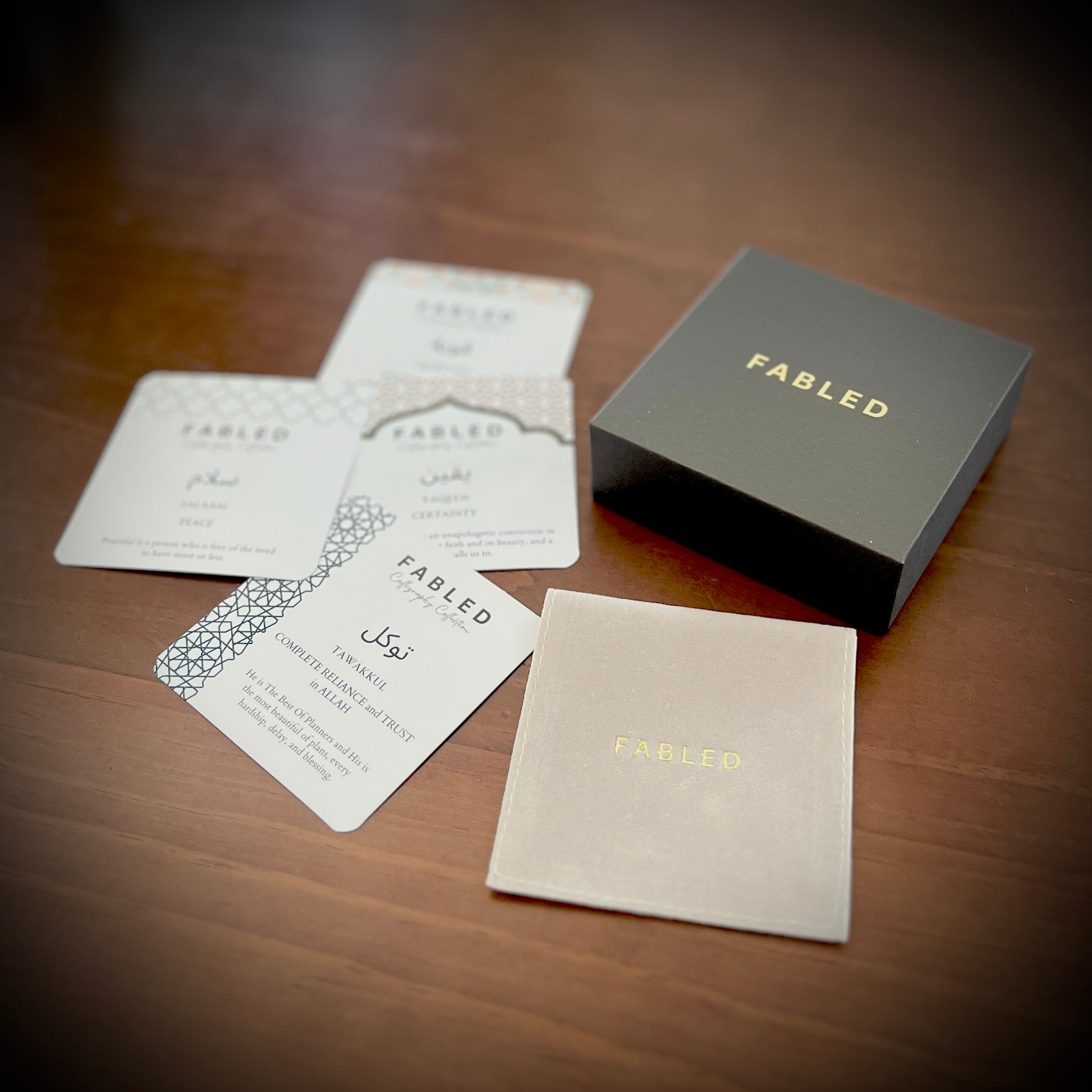 Each of our calligraphy pieces comes packaged in a beautiful gift box with a gold-embossed travel pouch insert and a 'Wear Your Truth' card detailing the meaning of the word(s) written on the piece.
